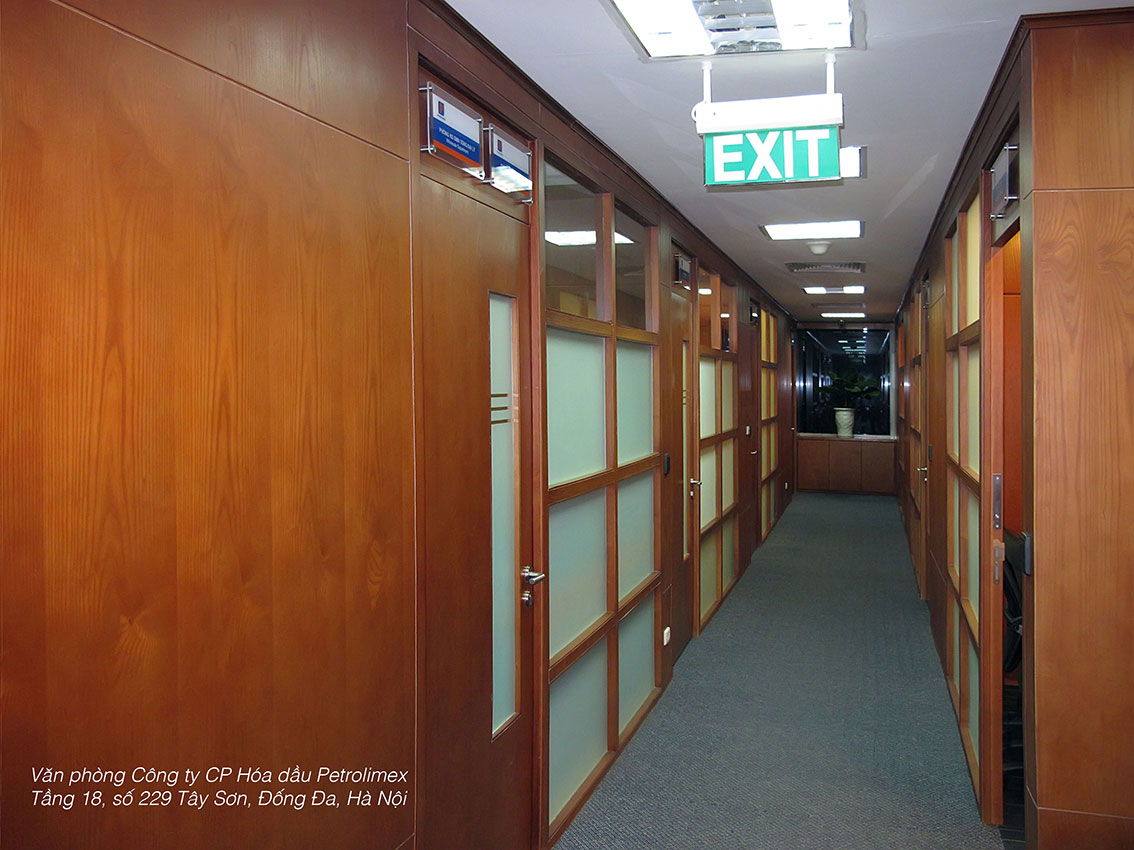 Văn phòng được phân chia thành các phòng, khu làm việc theo công năng sử dụng. Vách phân chia sử dụng chất liệu gỗ. Trần văn phòng sử dụng chất liệu tấm trần thạch cao. Văn phòng được bố trí đầy đủ các hệ thống điện chiếu sáng, hệ thống điều hòa, hệ thống báo cháy & chữa cháy tự động theo đúng quy định. Các thiết bị nội thất được nhập khẩu và gia công trong nước.