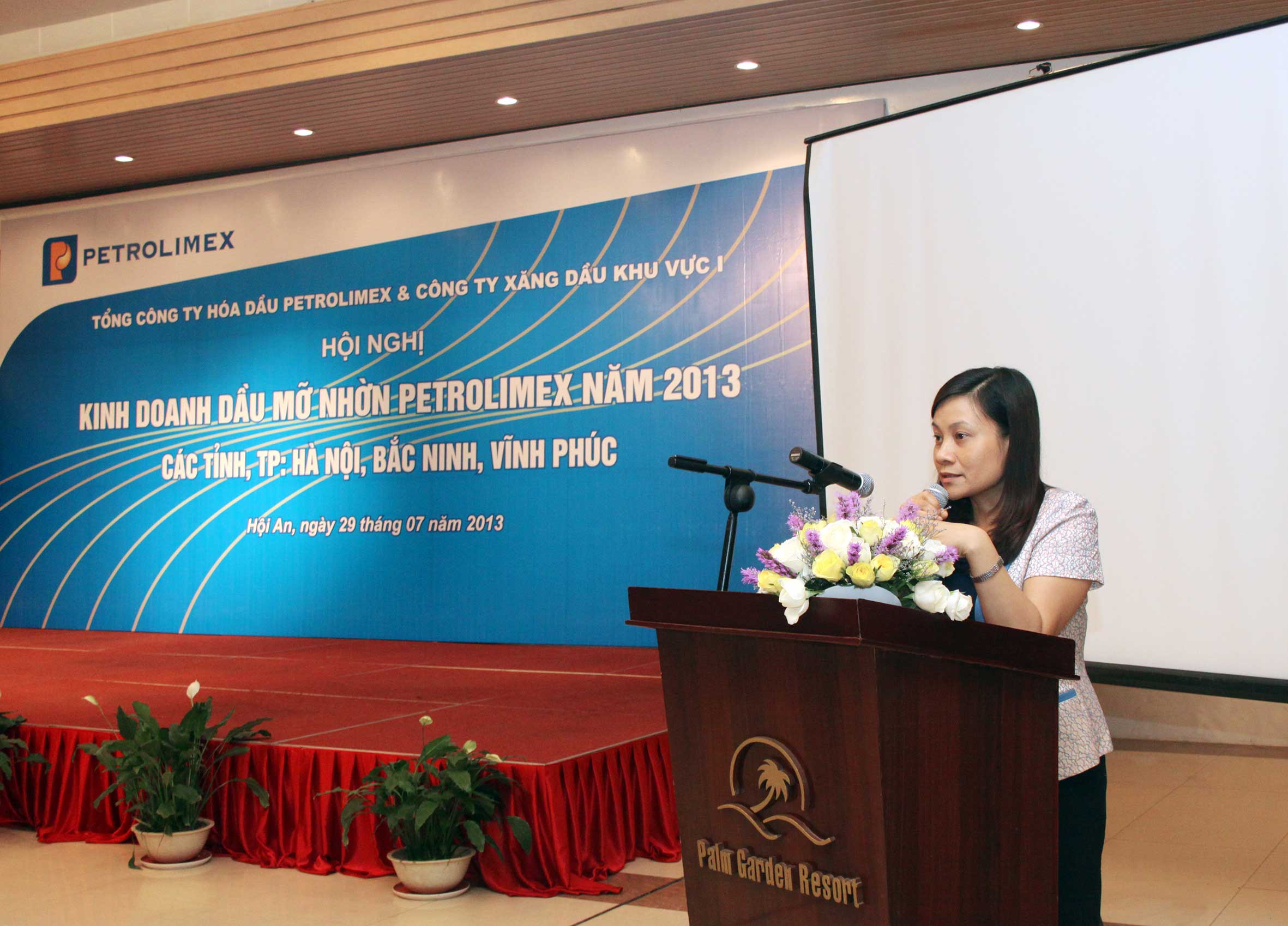 Phó Giám đốc CTXD Khu vực I Nguyễn Thị Minh Hiền nhấn mạnh thành tích đạt được trong kết quả KD DMN Petrolimex 06 tháng đầu năm 2013 đồng thời thể hiện tinh thần quyết tâm phát triển tăng sản lượng DMN mang thương hiệu Petrolimex trong 06 tháng cuối năm 2013 và các năm tiếp theo