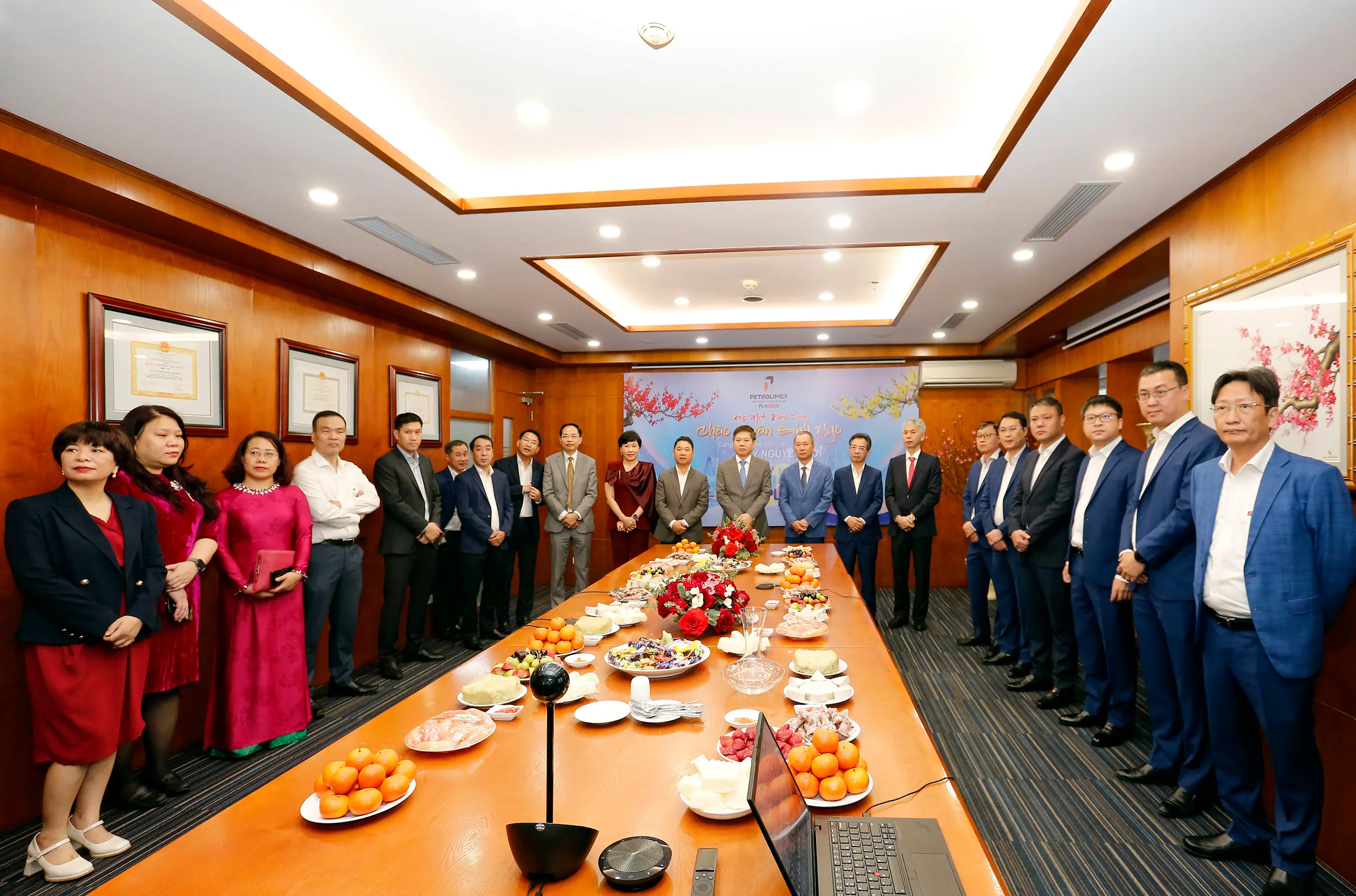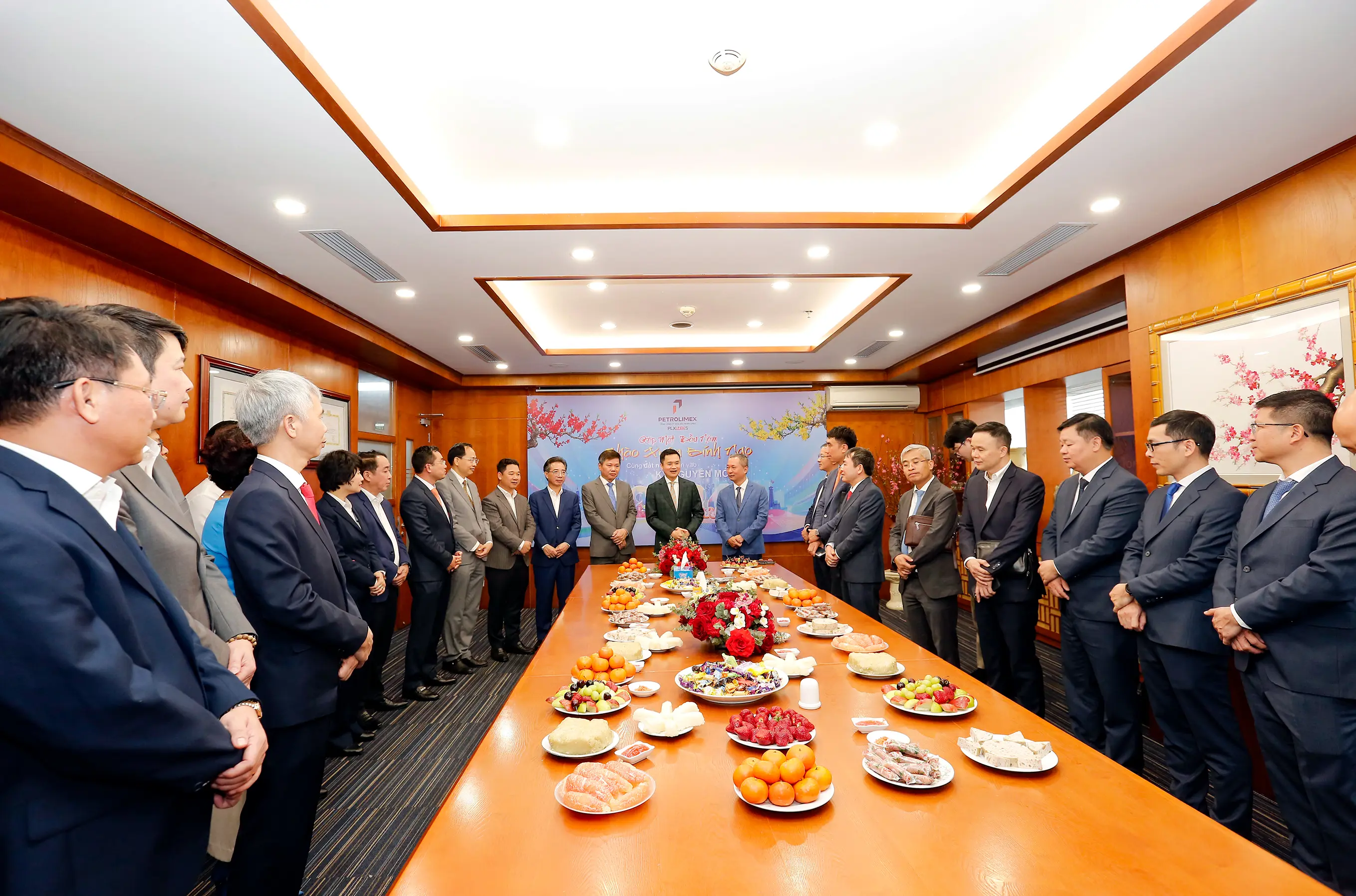 Tại buổi họp mặt vui tươi, đầm ấm này, Tổng công ty PLC đã vinh dự được đón tiếp Ủy viên BCH Đảng bộ Chính phủ, Bí thư Đảng ủy, Chủ tịch HĐQT Tập đoàn Xăng dầu Việt Nam Phạm Văn Thanh và đoàn cán bộ lãnh đạo Tập đoàn đến chia vui, chúc Tết và chúc mừng kết quả kinh doanh năm 2025 của Tổng công ty PLC.