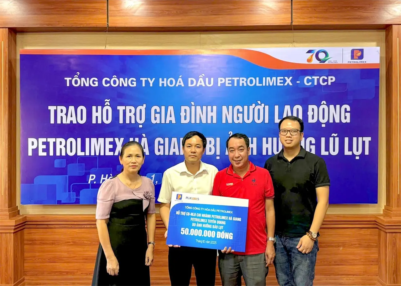TCT PLC đã phát động phong trào đóng góp ủng hộ đồng bào bị lũ lụt và tổ chức các đoàn công tác đến thăm hỏi, động viên và trao tặng quà hỗ trợ khắc phục hậu quả bão lũ cho các Đơn vị Petrolimex trong các ngày từ 09 đến 12/10/2025: Petrolimex Thái Nguyên; Petrolimex Cao Bằng; Petrolimex Lạng Sơn; Petrolimex Bắc Ninh; Chi nhánh Petrolimex Hà Giang - Công ty Petrolimex Tuyên Quang.
